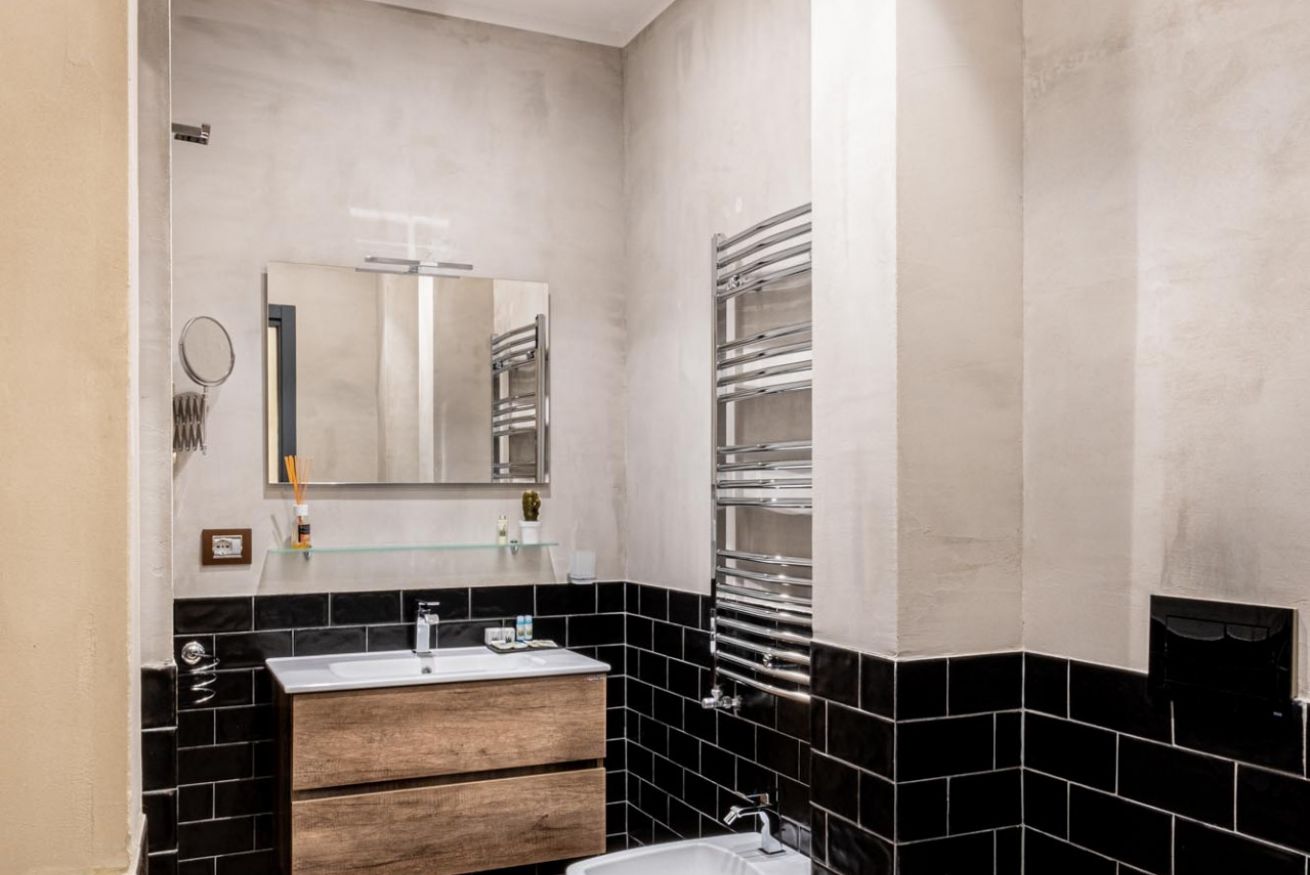 Bagno ampio con doccia munita di cromoterapia e termostato, aria condizionata e riscaldamento,